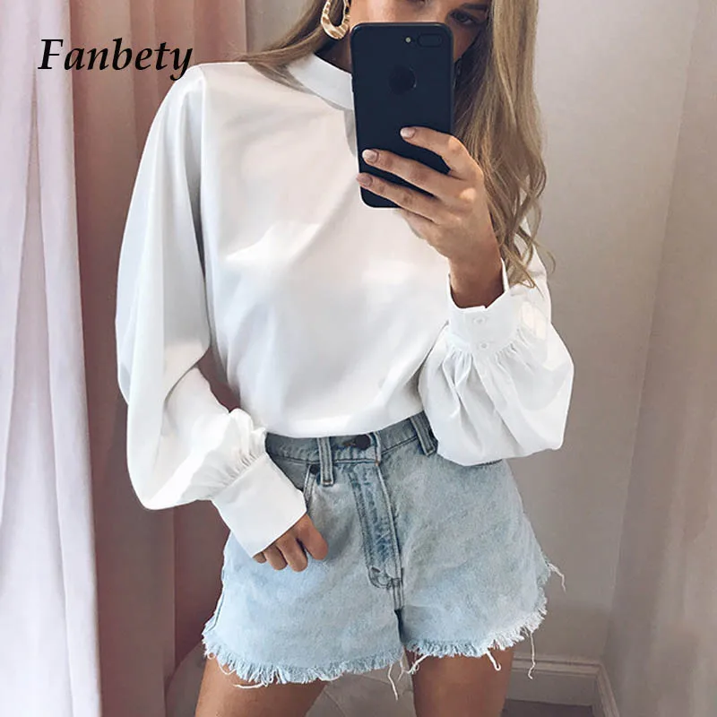 remarkable Fanbety Office Lady Lantern Sleeve Chiffon Blouse Women Autumn Turtle Neck solid Shirt Elegant wint