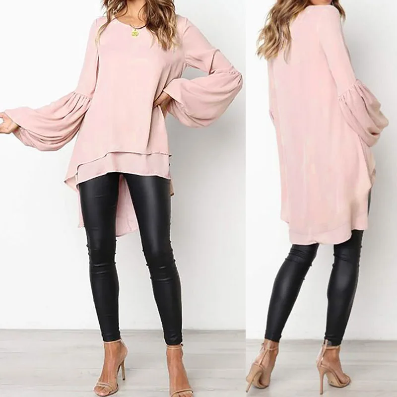 incredible Fashion Women's Asymmetrical Blouse 2019 ZANZEA Elegant Puff Sleeve Tops Layered Blusas Female Soli