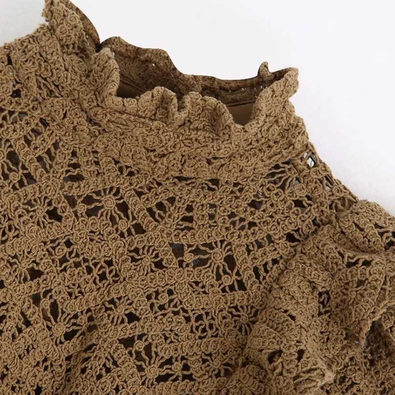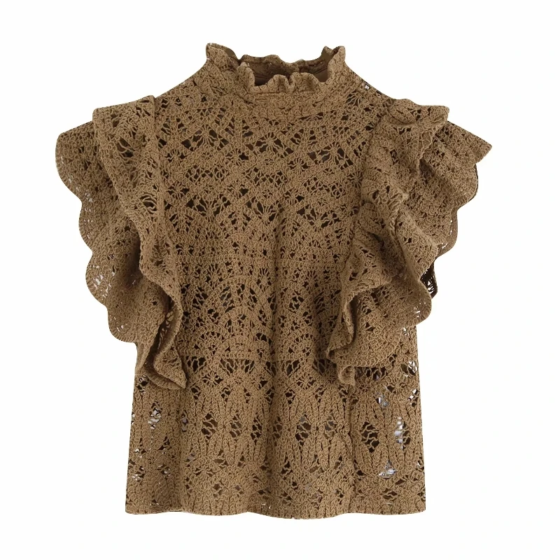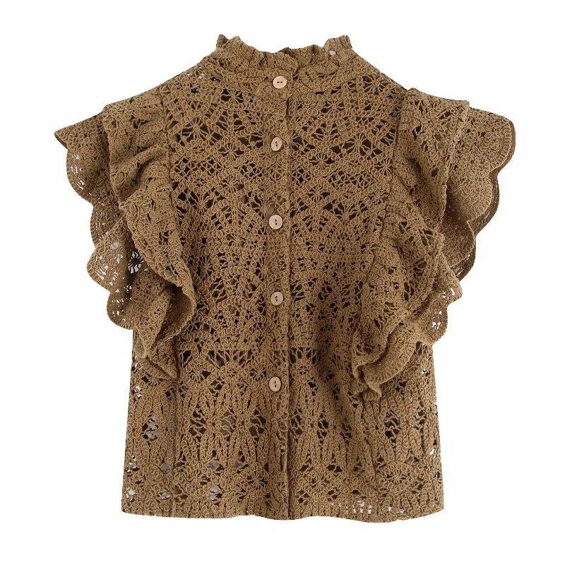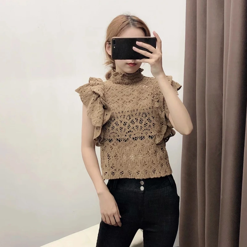 amazing 2019 women sexy hollow out lace crochet blouses ladies elegant cascading ruffles back buttons casua