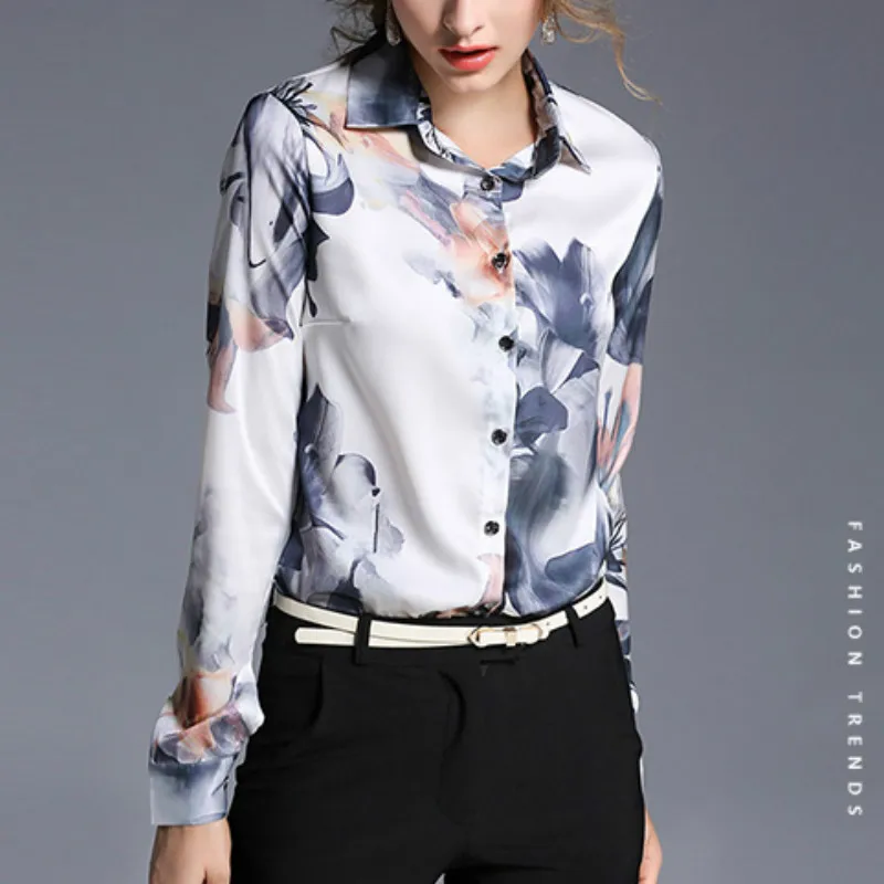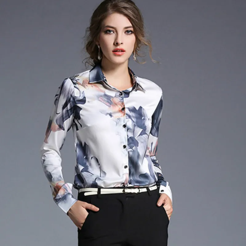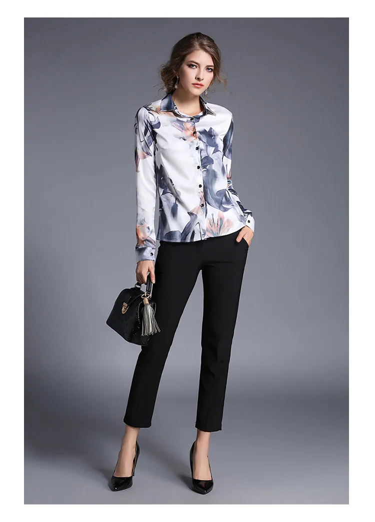 Greatest New Arrival 2018 Female Slim Body Printed All-match Blouse Fashion Long Sleeve Blouse Office Lady B