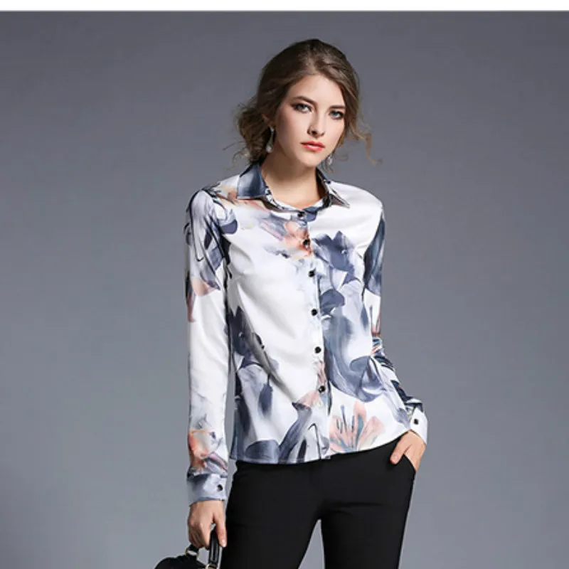 discounted New Arrival 2018 Female Slim Body Printed All-match Blouse Fashion Long Sleeve Blouse Office Lady B