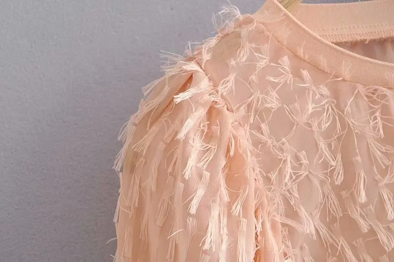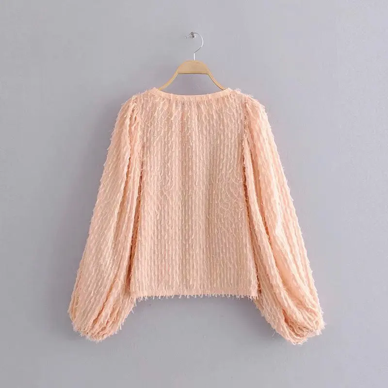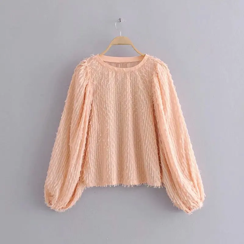 Promo new women fashion o neck lantern sleeve tassel stitching casual blouses shirts women pullover blusa