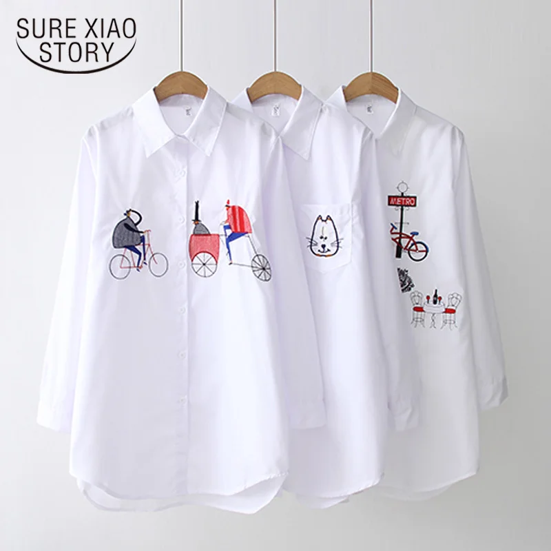 Middle-length Women Loose White Shirt Autumn New Korean Style Flower Embroidery Student Preppy Style Femaleblouses Tops 6832 50,2019 White Shirt Long Sleeve Autumn Shirt Women Bottoming Shirt Love Embroidered Blouse Cotton Women Blouse Ladies Tops 5598 50, 2019 White Shirt Long Sleeve Autumn Shirt Women Bottoming Shirt Love Embroidered Blouse Cotton Women Blouse Ladies Tops 5598 50