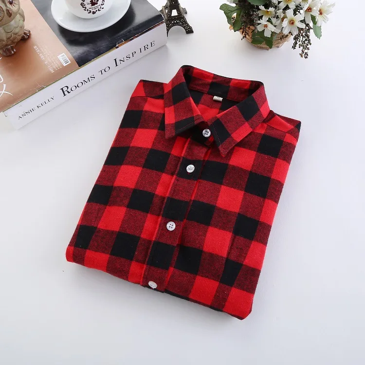Most effective 2019 Brand New Fashion Plaid Shirt Female Casual Style Women Blouses Long Sleeve Flannel Shirt Plus