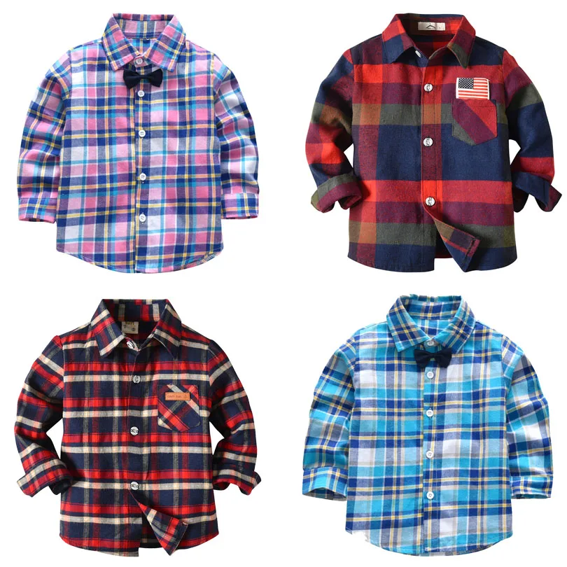 Promo Spring Long Sleeve Boy's Shirts Casual Turn-down Collar Camisa Masculina Blouses for Children Kids