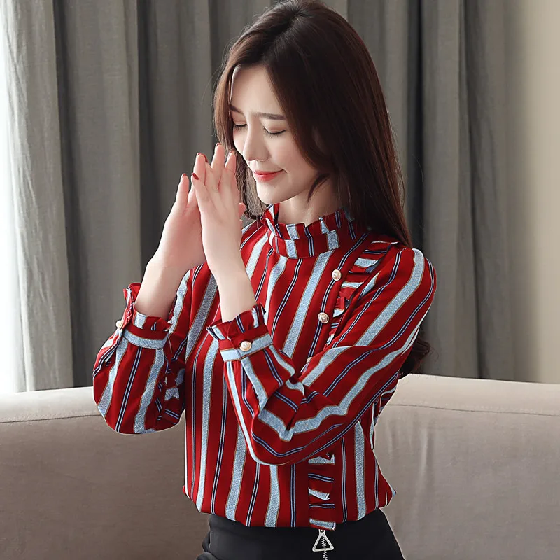 remarkable womens tops and blouses striped ofiice wear blouse long sleeve women shirts women chiffon blouse sh